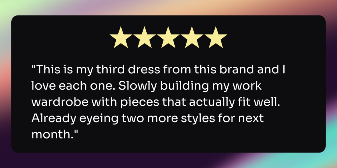What it looks like: “I’m a [your brand] customer now,” “Officially converted,” “This brand gets me,” “Feels made for people like me,” “As an [identifier], this is perfect,” “Finally a brand that understands.”
