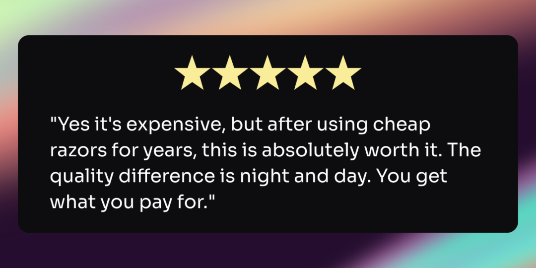 What it looks like: “Worth the price,” “Would pay even more,” “Better than cheaper alternatives,” “Investment piece,” “Quality over price,” “Upgrading from [budget option],” “Premium but worth it.”