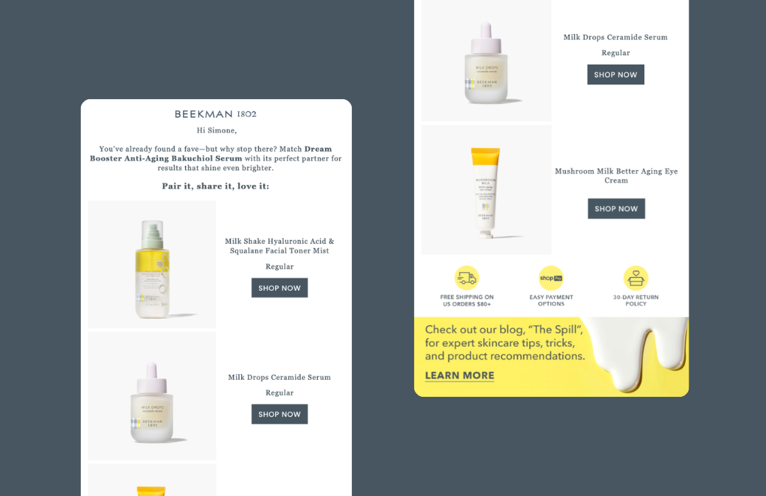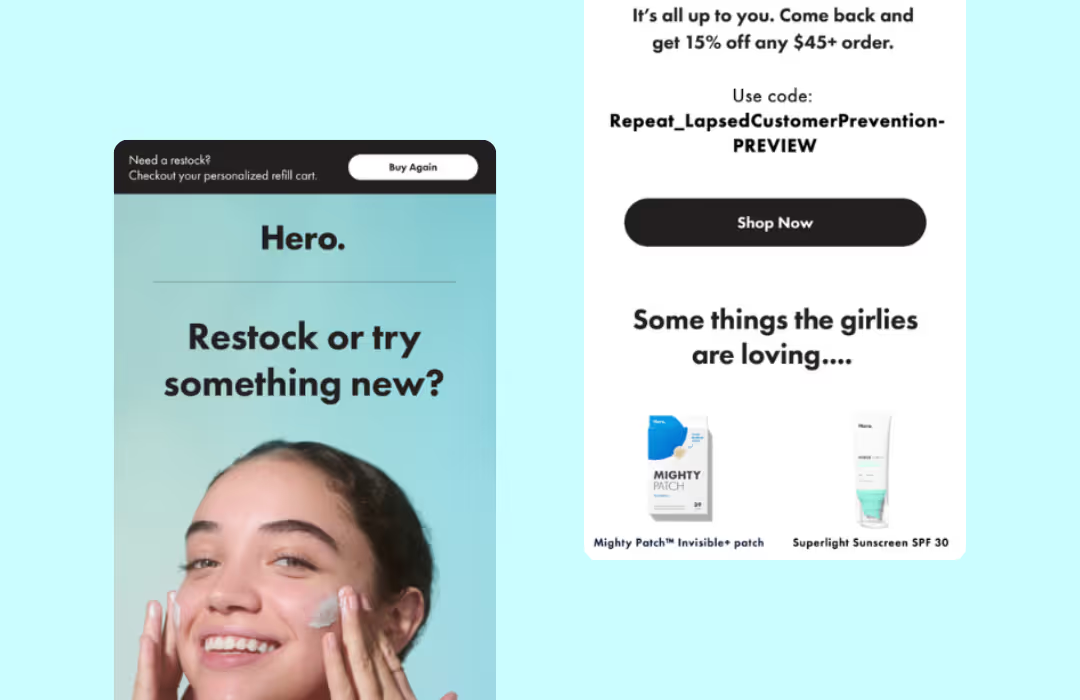 When Lifecycle sends automated retention messages—whether that’s a replenishment reminder, subscription upsell, or lapsed customer reactivation—the CTA takes customers directly to their Repeat Cart at precisely the right moment.