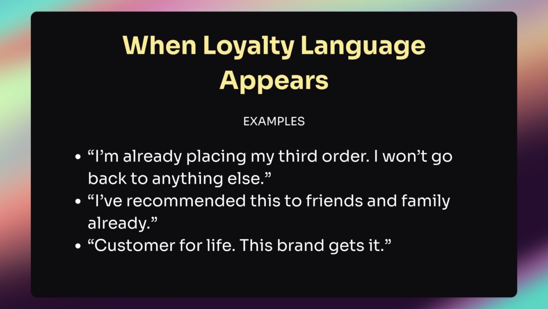 Reviews containing “ordering again,” “won’t use anything else,” or “customer for life” identify your most valuable customers. They’re already doing your marketing for free.