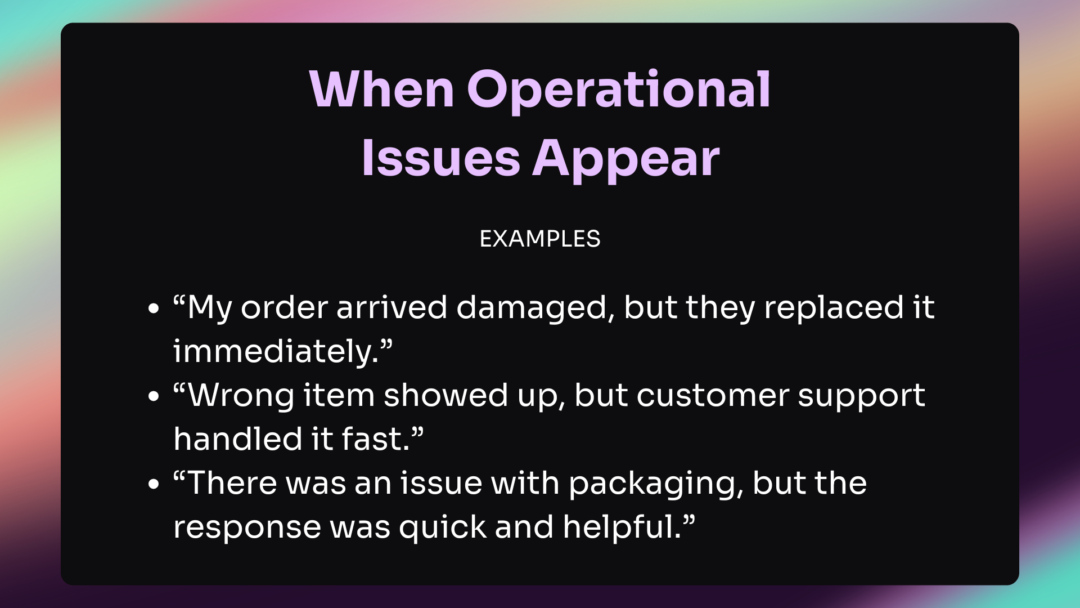 Operational failures feel personal to customers. They don’t think “shipping mistake,” they think “this brand doesn’t care.” Even if these issues are rare, they carry outsized emotional weight.