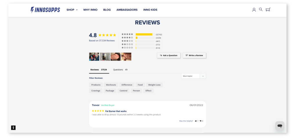 Since partnering with Stamped, Inno Supps has collected over 5,000 photo reviews and driven the following outcomes: