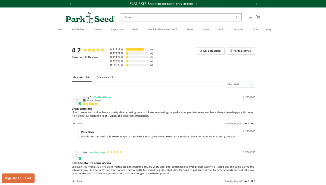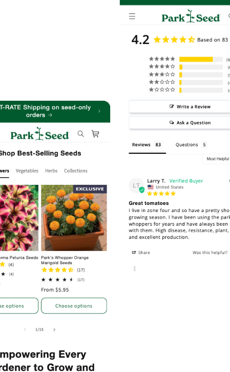 As Park Seed recently migrated their online store from Magento to Shopify, they needed a new reviews platform. After considering other platforms, Park Seed decided to choose Stamped for the comparable features, fair pricing, and team alignment that met their needs.